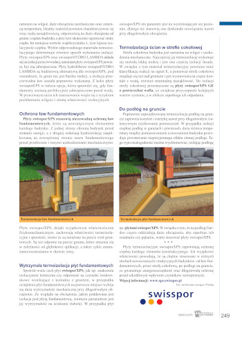 Ocieplenie fundamentów i stref przylegających typu cokoły, podłoga, a także innych przegród jest kluczowe w celu zapewnienia energooszczędności i trwałości budynku oraz przyjaznego mikroklimatu w pomieszczeniach. W związku z tym, że ewentualne prace remontowe są kosztowne oraz czasochłonne, wybór odpowiedniego materiału termoizolacyjnego jest niezwykle istotny. Coraz bardziej rygorystyczne wymagania dotyczące budynków skłaniają inwestorów do poszukiwania rozwiązań wyróżniających się bardzo dobrą jakością. Popularnymi materiałami używanymim.in. do termoizolacji fundamentów są wyroby oferowane przez firmę swisspor Polska, a wśród nich bogaty asortyment płyt EPS i XPS.