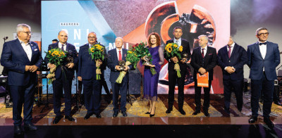 Laureaci „Betonowych Oskarów” Dni Betonu 2025 wraz z wręczającymi: Od lewej: Dariusz Gawlak, wiceprzewodniczący SPC; prof. Paweł Pichniarczyk, Łukasiewicz – Instytut Ceramiki i Materiałów Budowlanych; Krzysztof Witkowski, Prezes Bruk-Bet; Bogusław Kisiel, Prezes Bosta Beton; prof. Marta Kosior-Kazberuk, Rektor Politechniki Białostockiej; Piotr Szymanowski, Dyrekor Techniczno-Handlowy Betard (w zastępstwie Prezesa Artura Dziechcińskiego); Krzysztof Kieres, Przewodniczący SPC; prof. Jan Deja, Dyrektor Wykonawczy Stowarzyszenia Producentów Cementu; Zbigniew Pilch – Dyrektor Marketingu i Public Affairs SPC Fot. Archiwum SPC