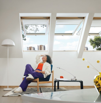 Okna dachowe GREENVIEW FAKRO otwierają wnętrza na światło i tworzą przestrzeń pełną energii.