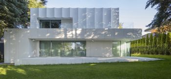 Uzasadnienie: Jednolity wyraz architektoniczny uformowany z cienkościennych płyt GRC z białego cementu, jawi się jako monolit, rzeźbiarska figura pozbawiona ornamentu. To architektura, która operuje czystą formą i fakturą, redukując zbędne elementy, aby wydobyć esencję przestrzeni. Precyzja detalu fasady jest świadomym gestem, niczym cięcie dłuta w kamieniu. Ekologia i innowacja przez zastosowanie cementu o właściwościach antysmogowych, kruszywa z rozbiórki oraz systemów energooszczędnych nadaje betonowi nową tożsamość - staje się materiałem, który nie tylko buduje, lecz także oczyszcza i wspiera życie. Dom Biały jest dowodem, że beton może być jednocześnie konstrukcją, estetyką i ideą – organizować przestrzeń, tworzyć rzeźbiarską formę i wcielać zasady zrównoważonego rozwoju.