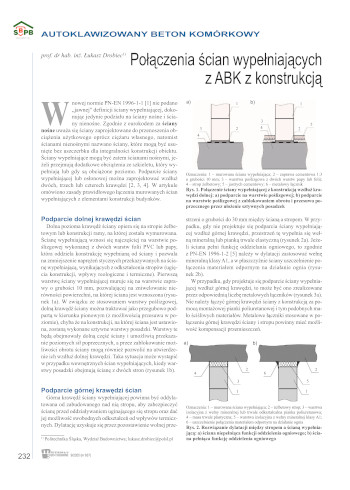 W nowej normie PN-EN 1996-1-1 [1] nie podano „jawnej” definicji ściany wypełniającej, dokonując jedynie podziału na ściany nośne i ściany nienośne. Zgodnie z eurokodem za ściany nośne uważa się ściany zaprojektowane do przenoszenia obciążenia użytkowego oprócz ciężaru własnego, natomiast ścianami nienośnymi nazwano ściany, które mogą być usunięte bez uszczerbku dla integralności konstrukcji obiektu. Ściany wypełniające mogą być zatem ścianami nośnymi, jeżeli przejmują dodatkowe obciążenia ze szkieletu, który wypełniają lub gdy są obciążone poziomo. Podparcie ściany wypełniającej lub osłonowej można zaprojektować wzdłuż dwóch, trzech lub czterech krawędzi [2, 3, 4]. W artykule omówiono zasady prawidłowego łączenia murowanych ścian wypełniających z elementami konstrukcji budynków.