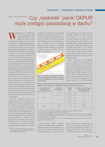 W artykule [1] opublikowanym w miesięczniku „Materiały Budowlane” 3/2025 zaproponowałem układy materiałowe w dachu, które powinny zabezpieczyć wysoko paroprzepuszczalne membrany wstępnego krycia (MWK) przed wypychaniem po natryśnięciu pianki z otwarto komórkowego poliuretanu (OKPUR). Takich propozycji było więcej [2, 3], ponieważ wypychanie membran przez pianki OKPUR jest (a raczej było) dużym problemem dla dekarzy. W wyniku współpracy Polskiego Stowarzyszenia Dekarzy i Stowarzyszenia Wykonawców Izolacji Natryskowych, przystąpiono do popularyzacji opracowanych metod natryskiwania pianki OKPUR, które nie dopuszczają do wybrzuszenia MWK.